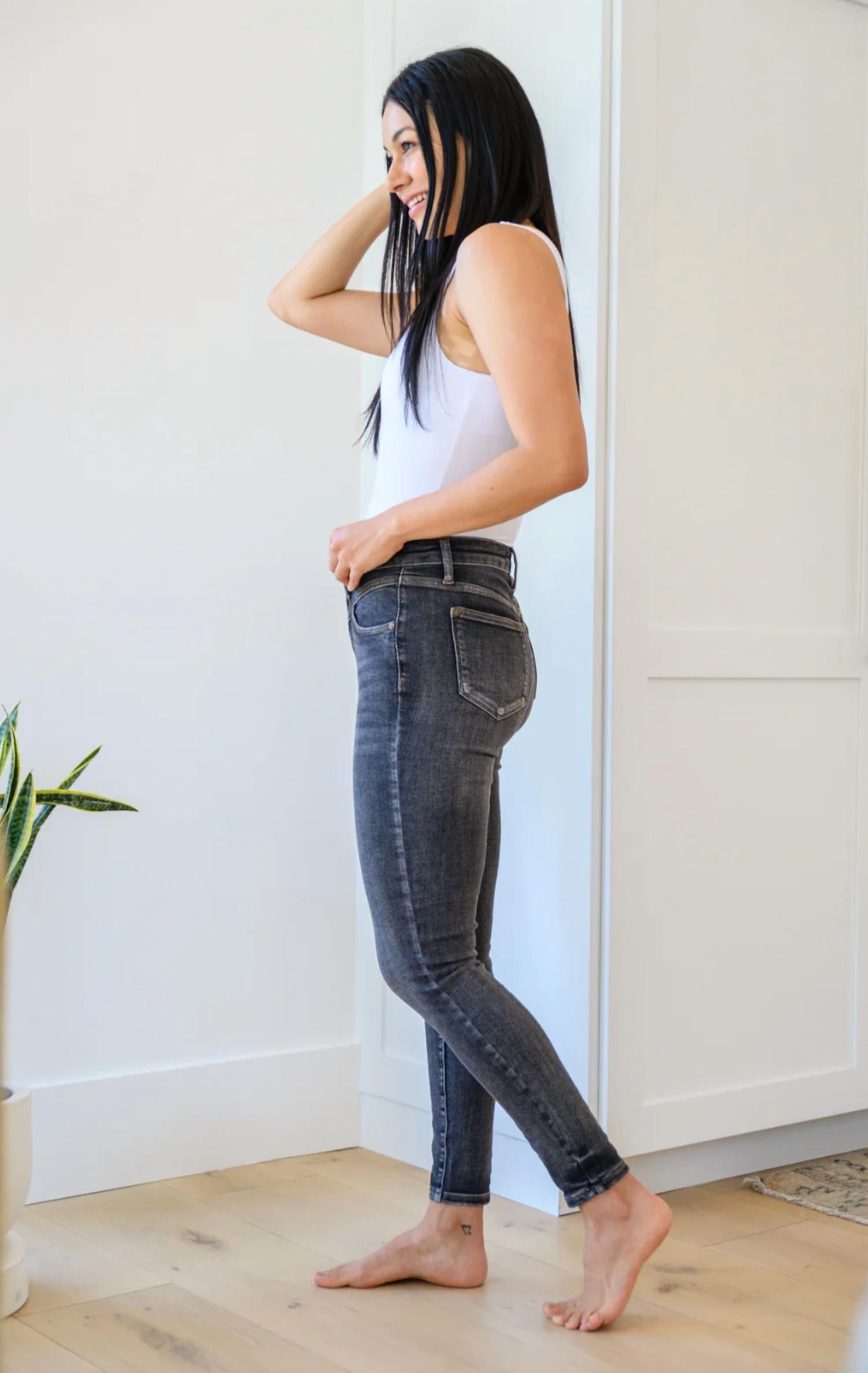 Todo mundo precisa de um bom par de jeans skinny e esse é um estilo que você vai usar sempre, não importa a estação. Apresentamos a Calça Jeans Skinny Yoke High Rise da Judy Blue, uma adição chique ao seu guarda-roupa em um versátil tom preto vintage. Confeccionada em uma confortável mistura de algodão com 92% algodão, 7% poliéster e 1% elastano, esta calça jeans oferece um corte slim estiloso com fecho de zíper. Com costura interna de 71 cm e detalhe chamativo na barra da calça, ela foi projetada para valorizar a silhueta de cintura alta.