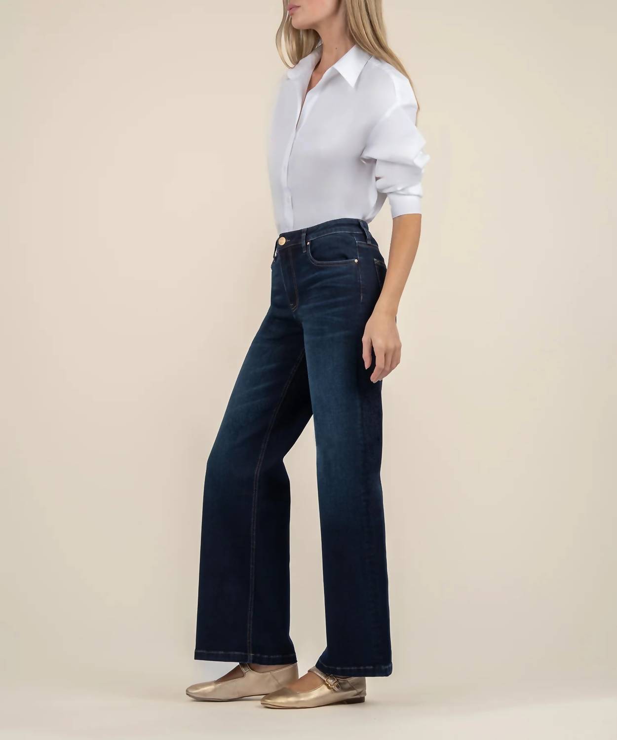 Descubra a fusão perfeita entre inspiração vintage e conforto moderno com a Calça Jeans High Rise Wide Leg da KUT FROM THE KLOTH. Confeccionada em uma mistura de algodão elástico composta por 96% algodão, 3% poliéster e 1% elastano, esta calça jeans oferece um caimento solto nas pernas com um corte largo que valoriza o corpo. A calça jeans tem 79 cm de costura interna, 56 cm de abertura nas pernas e 25 cm de altura.