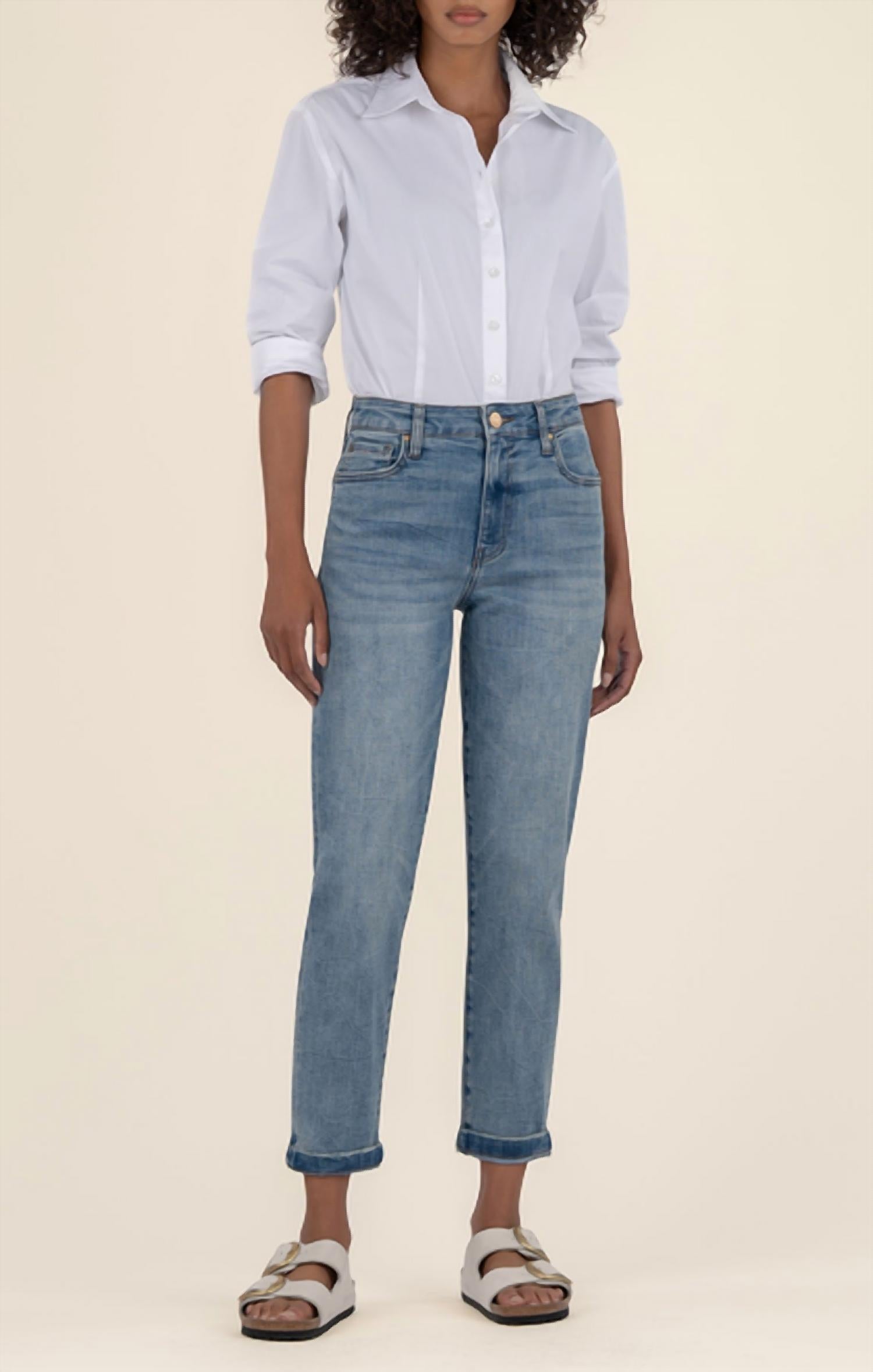 Essas calças jeans boyfriend fazem com que qualquer peça que você combine com elas pareça descolada e sem esforço. A Calça Jeans Curta Boyfriend Baggy Sienna da KUT FROM THE KLOTH é uma escolha estilosa para quem busca conforto e estilo. Confeccionada em uma mistura de algodão com estampa lisa, esta calça jeans oferece um caimento amplo, porém levemente justo, com cintura média. Com lavagem leve e corte reto, possui fecho de zíper e bolsos práticos para maior funcionalidade. Elegante e versátil, esta calça jeans tem uma costura interna de 64 cm após enrolada, antes de enrolada, de 66 cm, e uma abertura de 36 cm na perna. Perfeita para noivados na primavera, ela pode ser lavada na máquina para facilitar a manutenção.