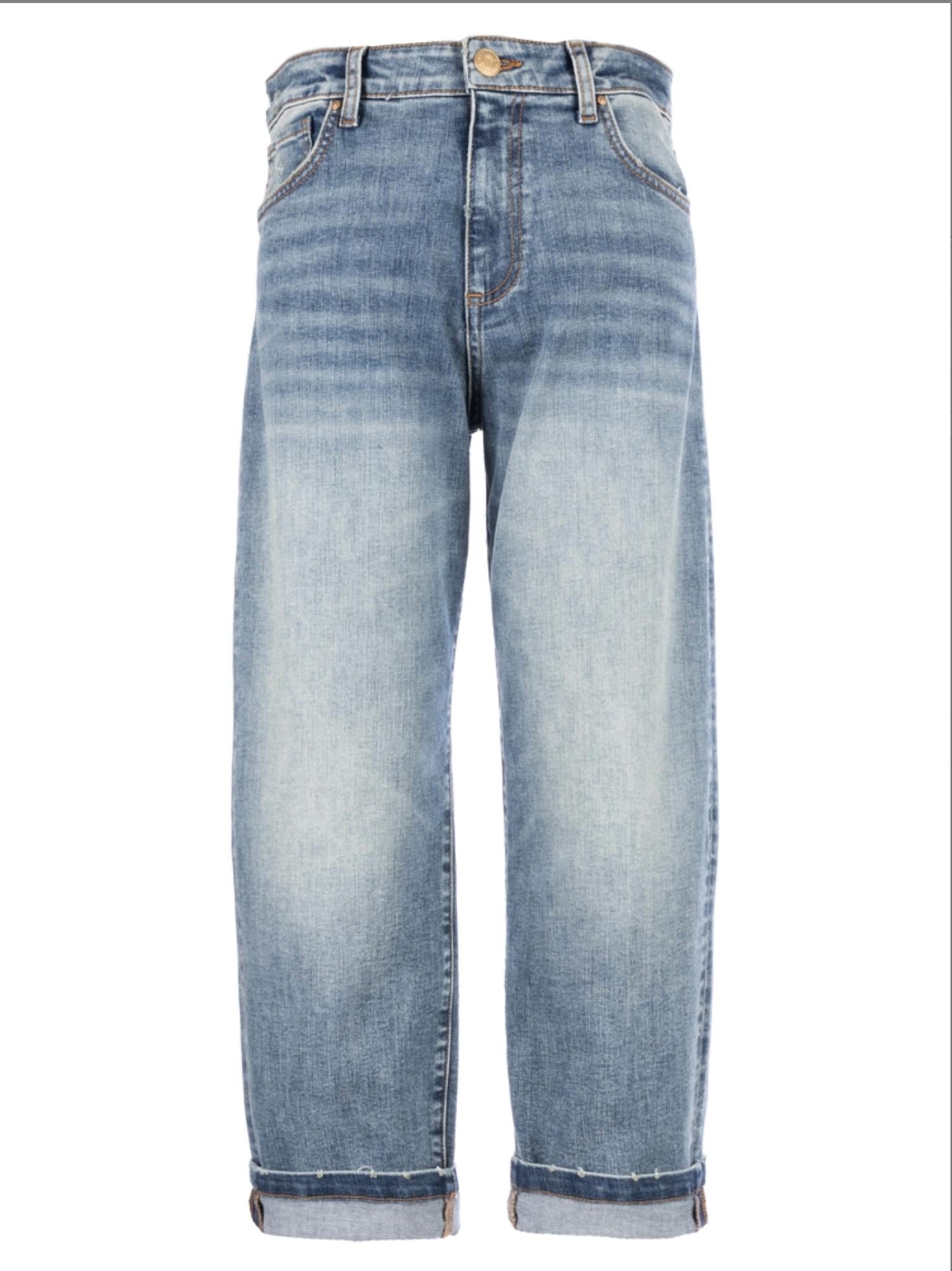 A Calça Jeans Curta Boyfriend Baggy Sienna da KUT FROM THE KLOTH é uma escolha estilosa para quem busca conforto e estilo. Confeccionada em uma mistura de algodão com estampa lisa, esta calça jeans oferece um caimento amplo, porém levemente justo, com cintura média. Com lavagem leve e corte reto, possui fecho de zíper e bolsos práticos para maior funcionalidade. Elegante e versátil, esta calça jeans tem uma costura interna de 64 cm após enrolada, antes de enrolada, de 66 cm, e uma abertura de 36 cm na perna. Perfeita para noivados na primavera, ela pode ser lavada na máquina para facilitar a manutenção.