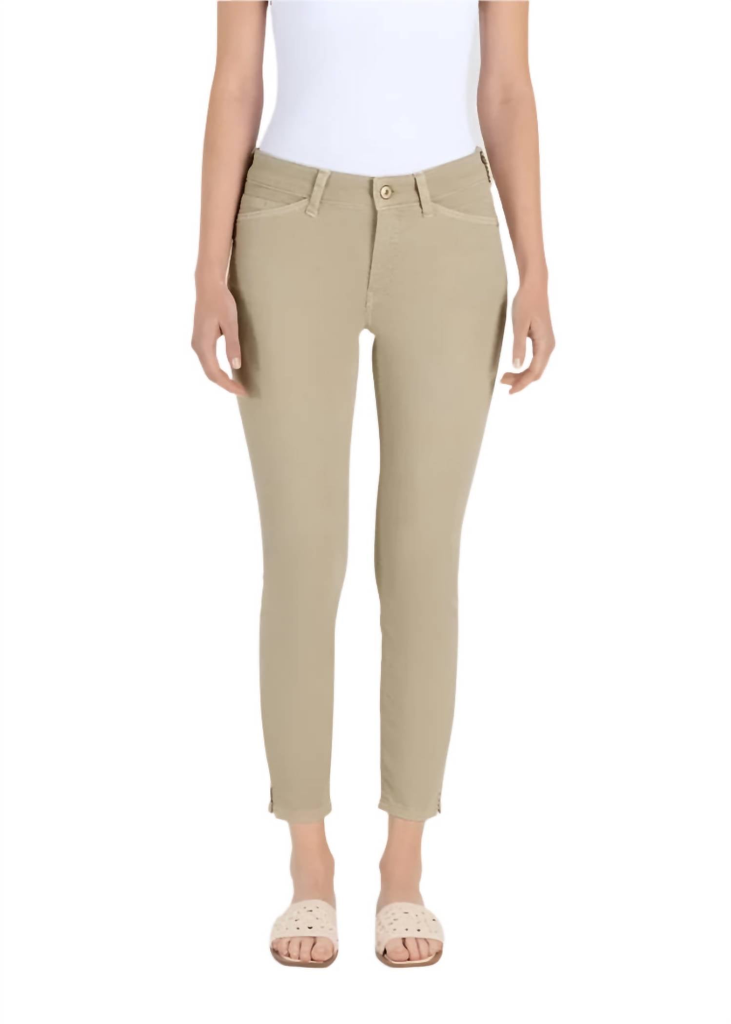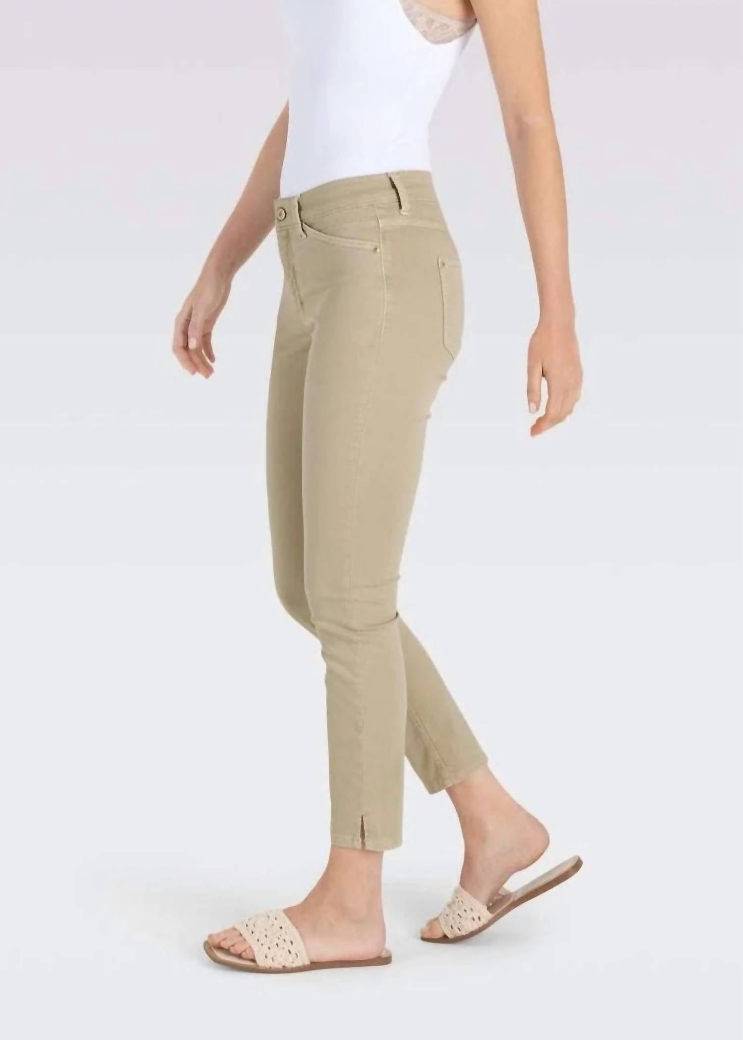 This classic straight leg jean has a perfect fit and goes with just about everything. Introducing the Women's Dream Summer Pant by MAC Jeans, a perfect blend of minimalist design and summer elegance in Summer Beige. These solid-colored pants feature a slim, straight leg and a slightly higher comfortable waist with a shortened 28" inseam for a chic look. Designed with a button closure, they include a practical five-pocket style, ideal for everyday wear. Effortlessly style these versatile pants for vacation or casual outings, and enjoy easy care with machine wash and tumble dry instructions.