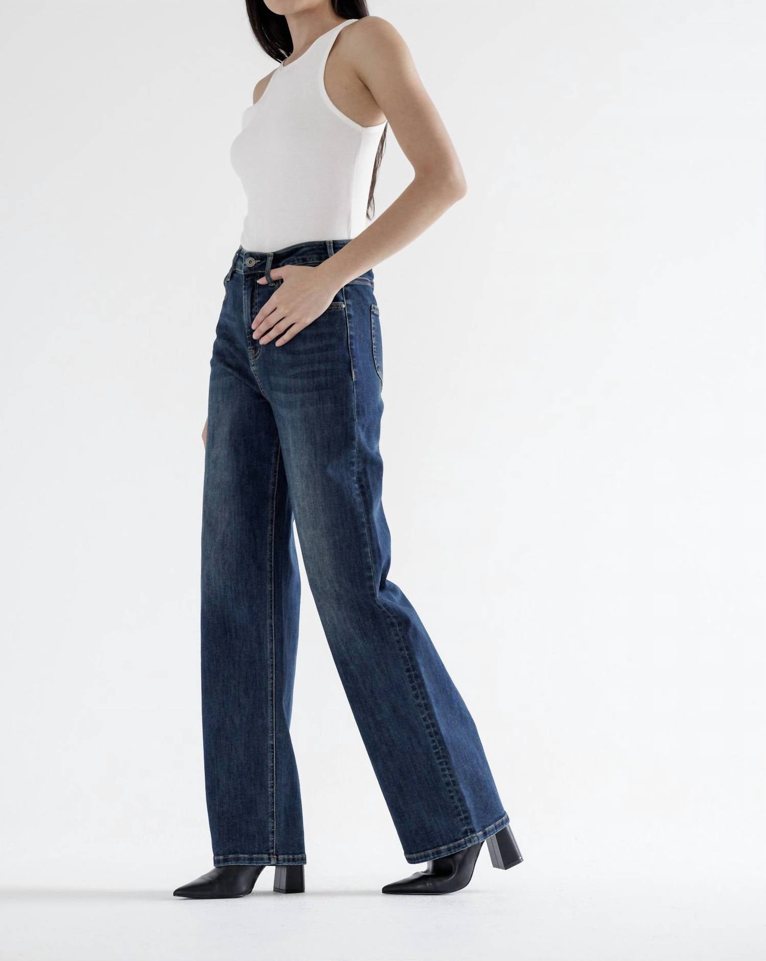 Pair these straight leg jeans with flats, sandals or even heels! You can't go wrong. Step into relaxed style with the Freya Super High Rise Straight Leg Loose Fit Jeans by Mica Denim. Crafted from a cotton blend of 90.5% cotton, 7% polyester, and 2.5% spandex, these jeans offer a comfortable stretch and a super high rise for a flattering fit. With a warm dark wash perfect for autumns, they feature a button closure and a garment length of 44.25 inches. Easy to care for, they are machine washable and can be tumble dried.