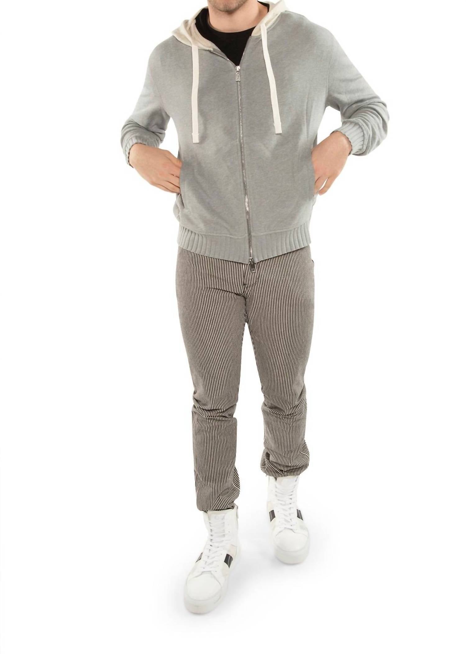 Confeccionada com um elegante padrão listrado em preto multicolorido, adapta-se à silhueta masculina skinny. Esta calça apresenta um corte slim com corte skinny, proporcionando um visual moderno e elegante. A praticidade é garantida pelos bolsos funcionais e pelo fecho de zíper seguro. Perfeita para adicionar um toque de sofisticação ao seu guarda-roupa do dia a dia.
