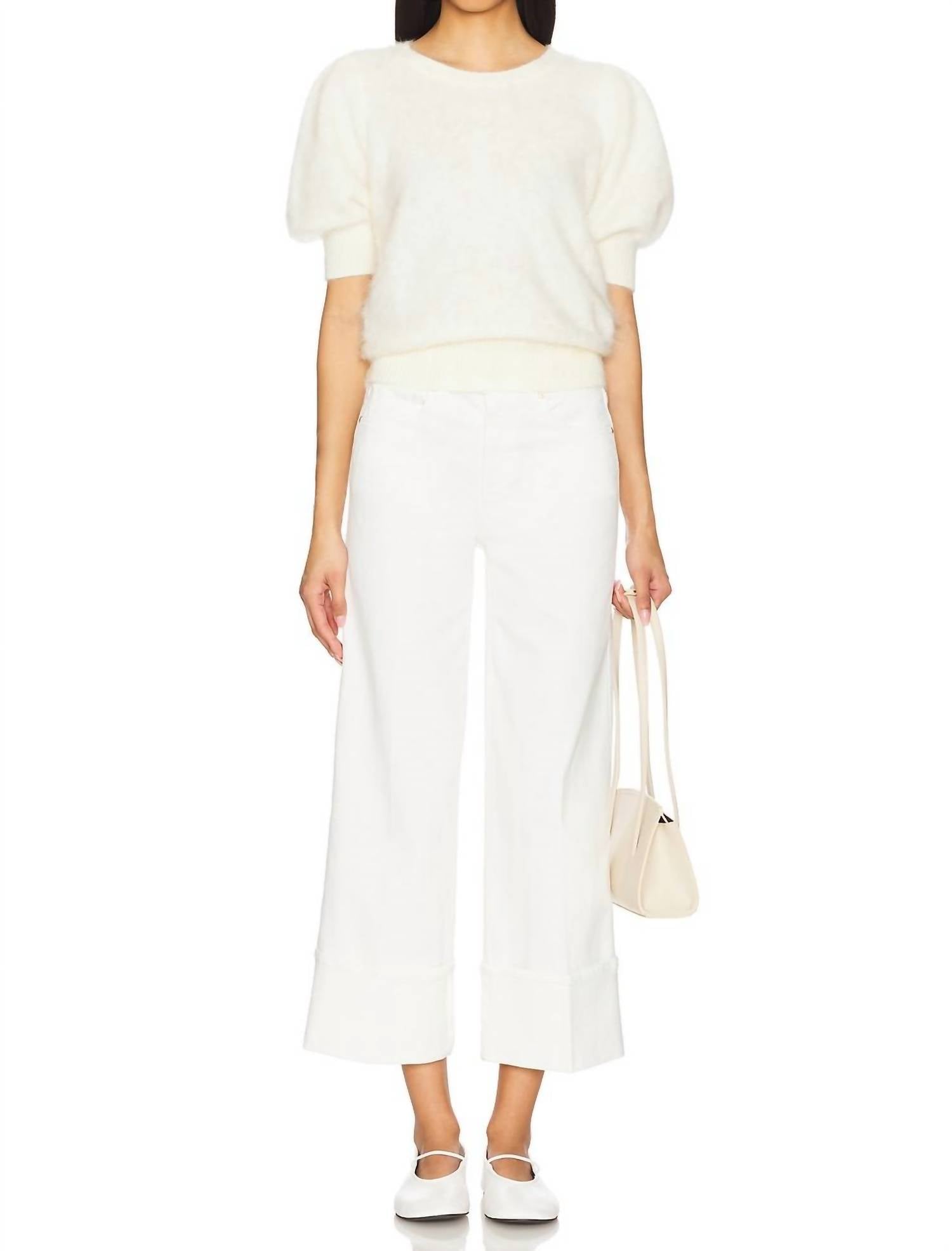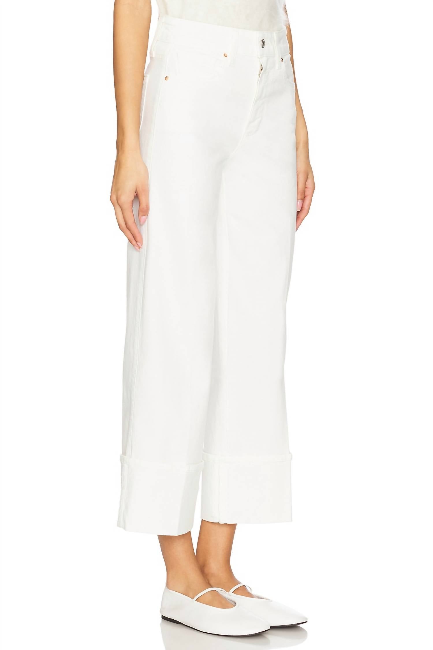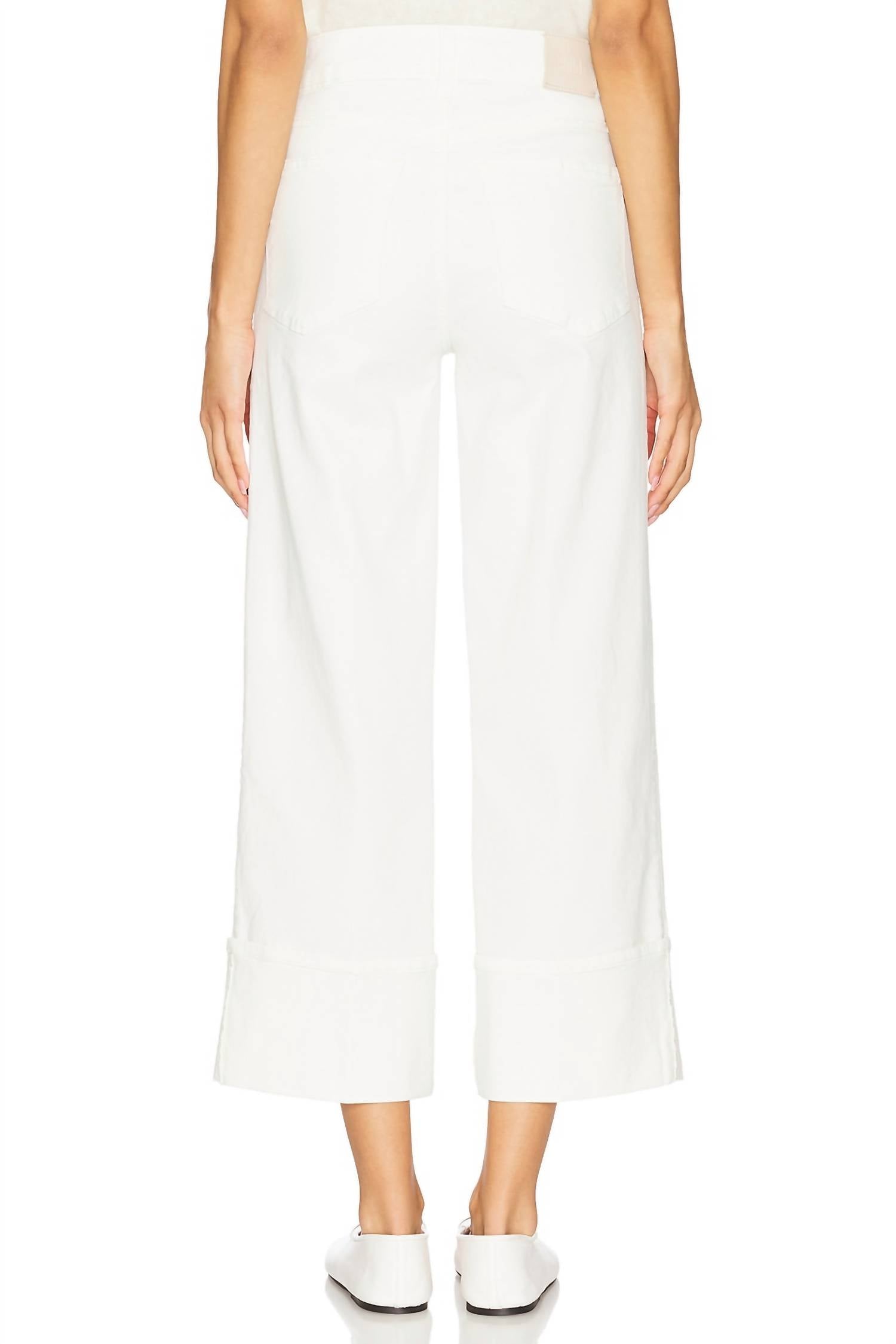 Experience all-day comfort with the Paige Sasha Ankle Wide Cuff Jeans in Tonal Ecru, designed for style-savvy individuals. These women's wide-leg jeans crafted from 98% cotton and 2% elastane feature a high rise and relaxed fit, complemented by a 28" inseam and a leg opening of 21", making them a standout in 90s fashion. The jeans offer a zip fly with button closure and a classic five-pocket style, perfect for effortless travel attire. Easy to maintain, simply machine wash.