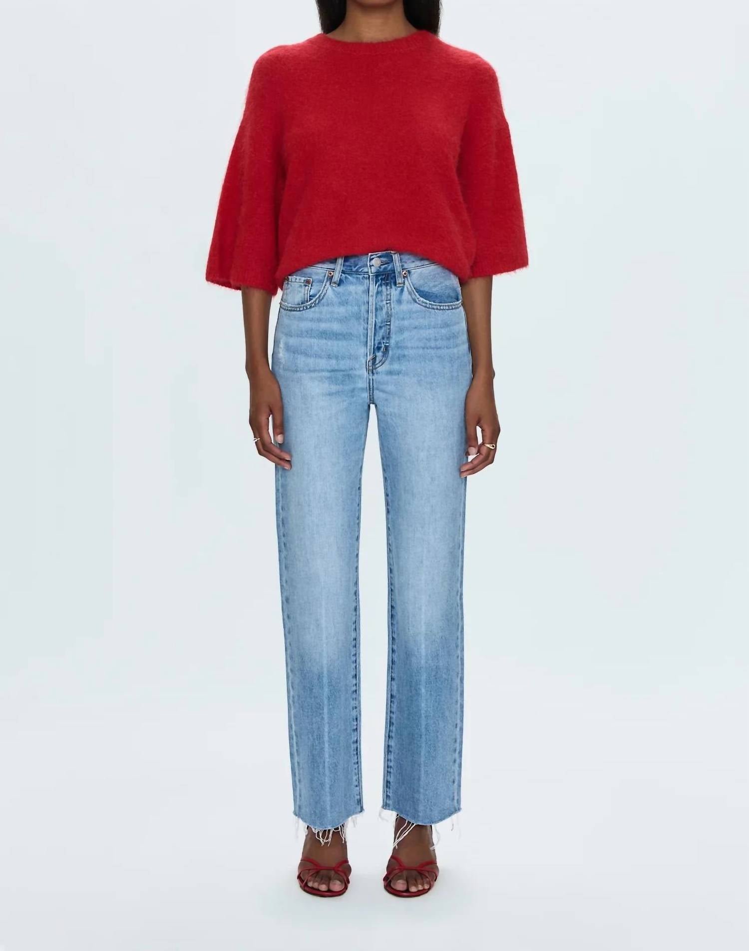 Esses jeans indispensáveis têm um caimento perfeito. Calça jeans super alta com corte reto clássico e bainha longa. Confeccionada em 100% algodão rígido e sem elasticidade, para uma silhueta perfeita e com modelagem ajustada. Com fecho de botão confortável e bolsos práticos. Possui 30 cm de altura e 78 cm de costura interna. Fabricada para uso importado e lavável à máquina, garante estilo e manutenção sem esforço.