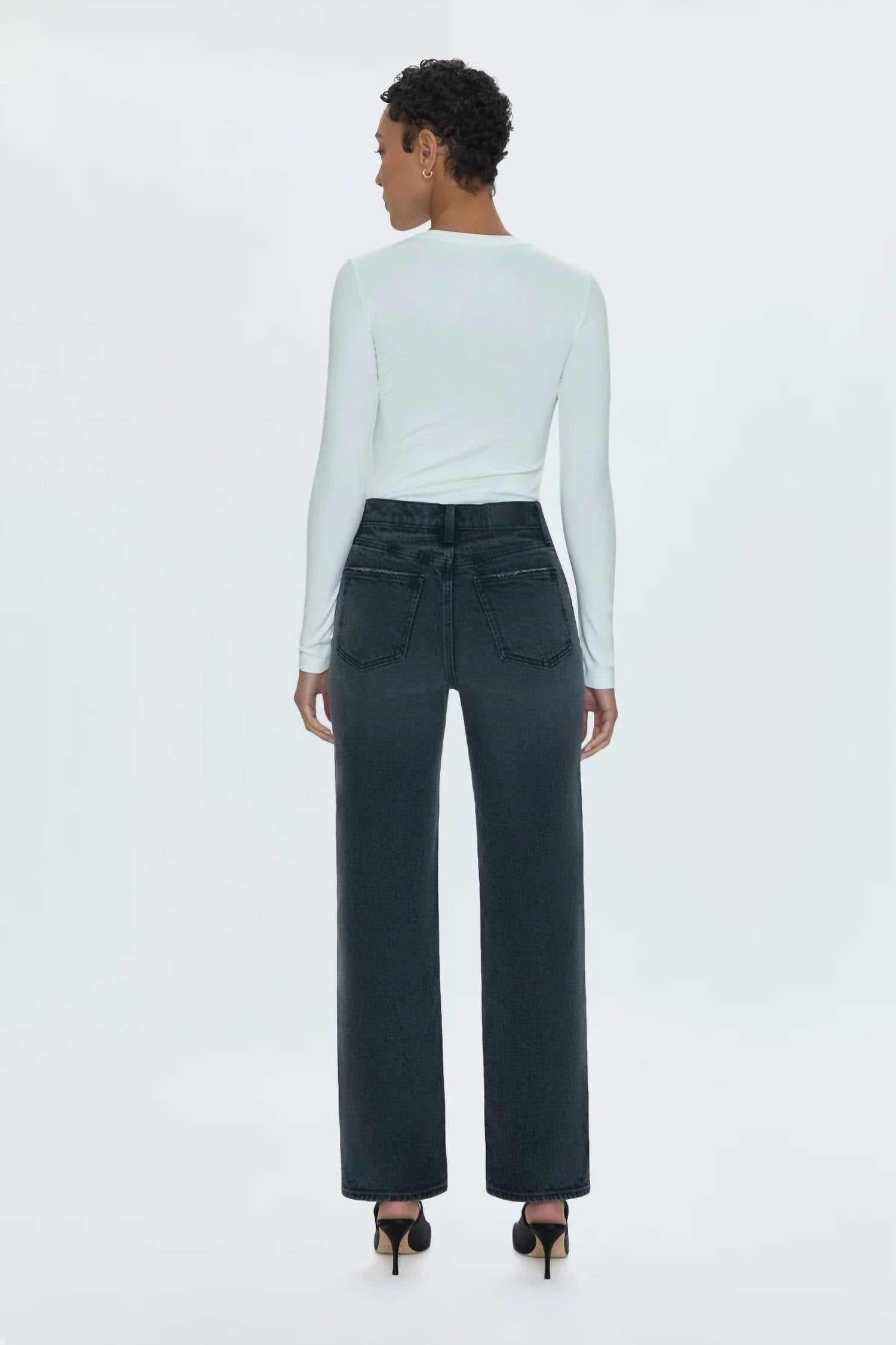 A Calça Jeans Pistola Cassie Super High Rise Straight na cor After Hours Vintage é uma peça atemporal para qualquer guarda-roupa. Confeccionada com uma mistura confortável de 77% algodão, 22% Tencel e 1% Elastano, esta calça apresenta uma perna reta clássica com uma bainha longa e elegante. A cintura super alta complementa a silhueta, com 30 cm de altura e uma abertura de 42 cm, enquanto a costura interna mede 78 cm. Esta calça jeans é importada e desenvolvida para um ajuste confortável, perfeita para uso o dia todo.