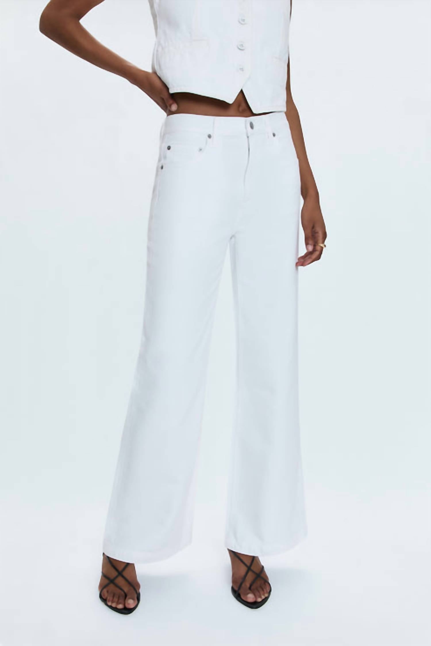 Uma silhueta elegante e surpreendentemente versátil. Apresentamos a calça jeans Jadyn Low Slung Palazzo da PISTOLA, um item essencial e chique na cor Branco Vivo para o seu guarda-roupa de verão. Esta calça jeans tem 28 cm de altura e 81 cm de costura interna, com corte largo para um caimento relaxado e estiloso. Confeccionada em uma mistura de algodão texturizado, possui fecho de botão e bolsos para maior praticidade. Confeccionada em 62% algodão e 38% liocel, esta calça jeans importada é perfeita para viagens e um estilo despojado, oferecendo uma opção de fácil cuidado com instruções de lavagem à máquina.
