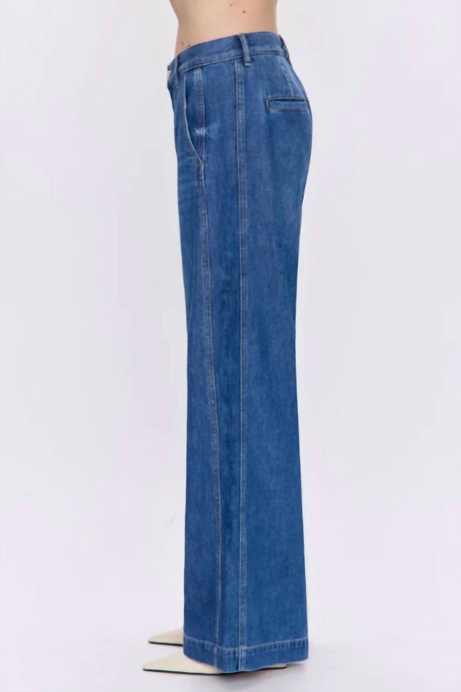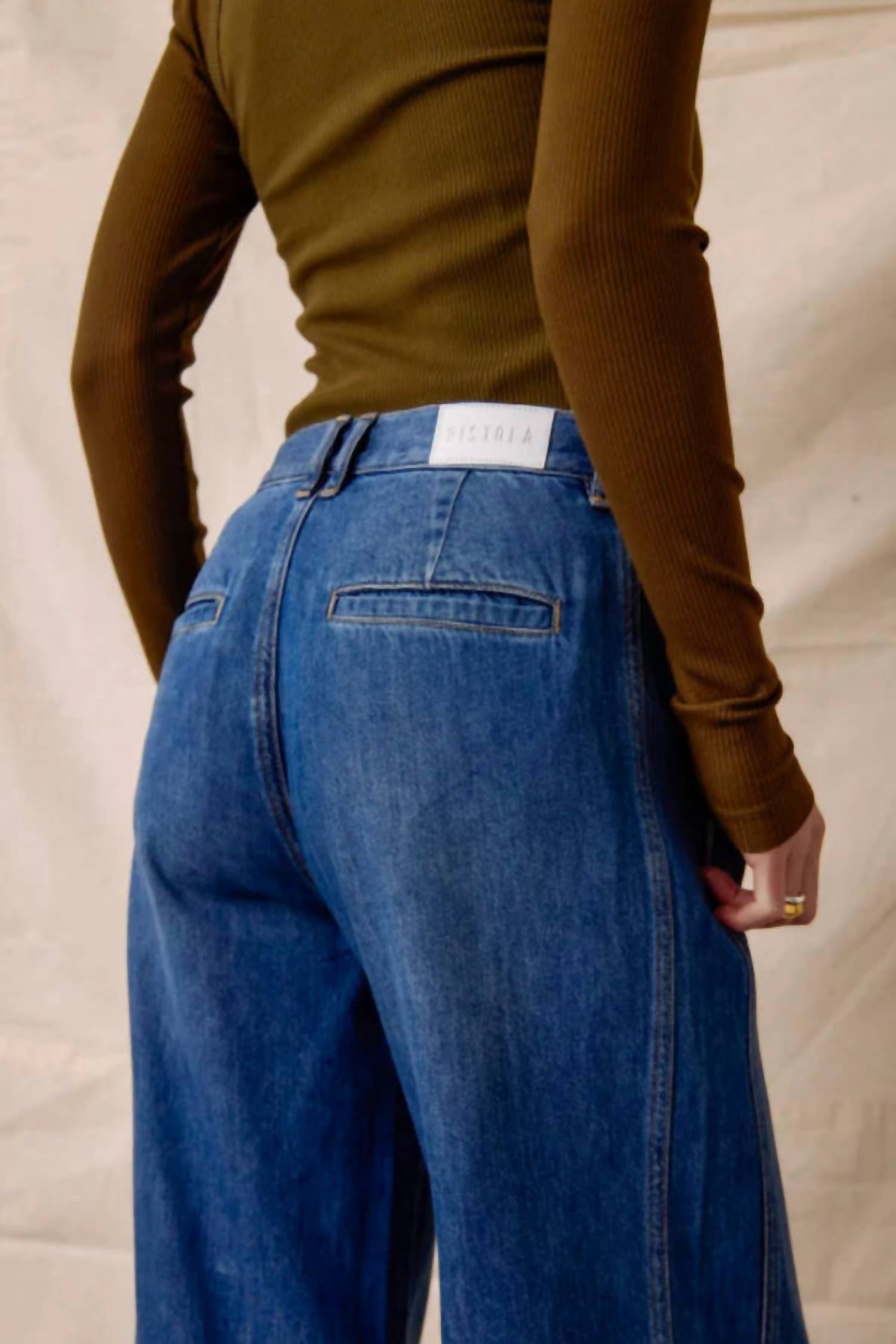 Embrace laid-back luxury with the Jadyn Low Slung Palazzo Jean by PISTOLA in the color Imagine. Featuring a button closure, these wide-leg pants sit low on the hips with a relaxed fit, offering a modern edge through a low rise of 11 1/4” and a leg opening of 25". Crafted from a comfortable blend of 59% Cotton and 41% Lyocell non-stretch denim, they deliver graceful flow with a full-length 32" inseam. Imported with care, simply machine wash cold and tumble dry.