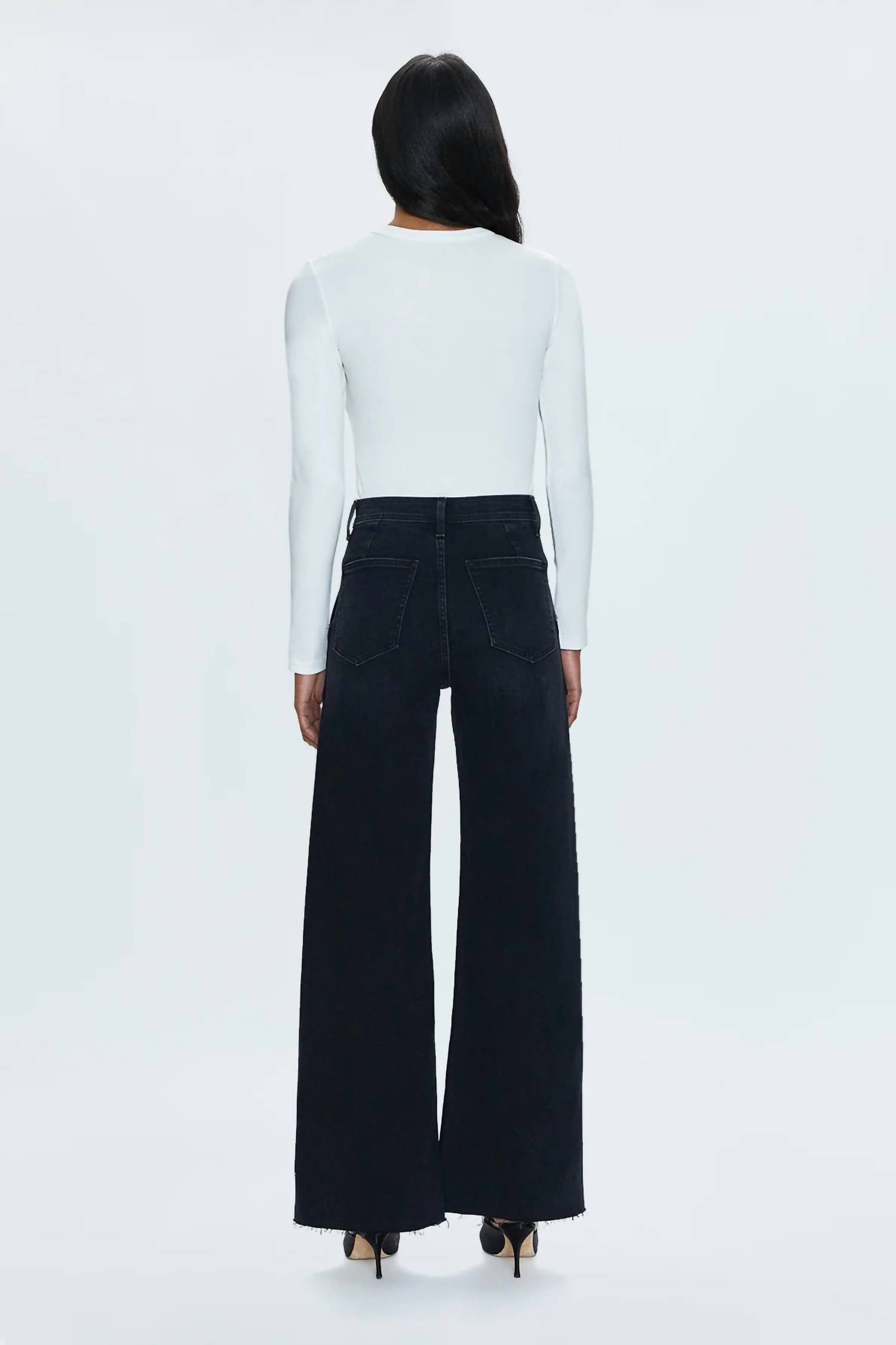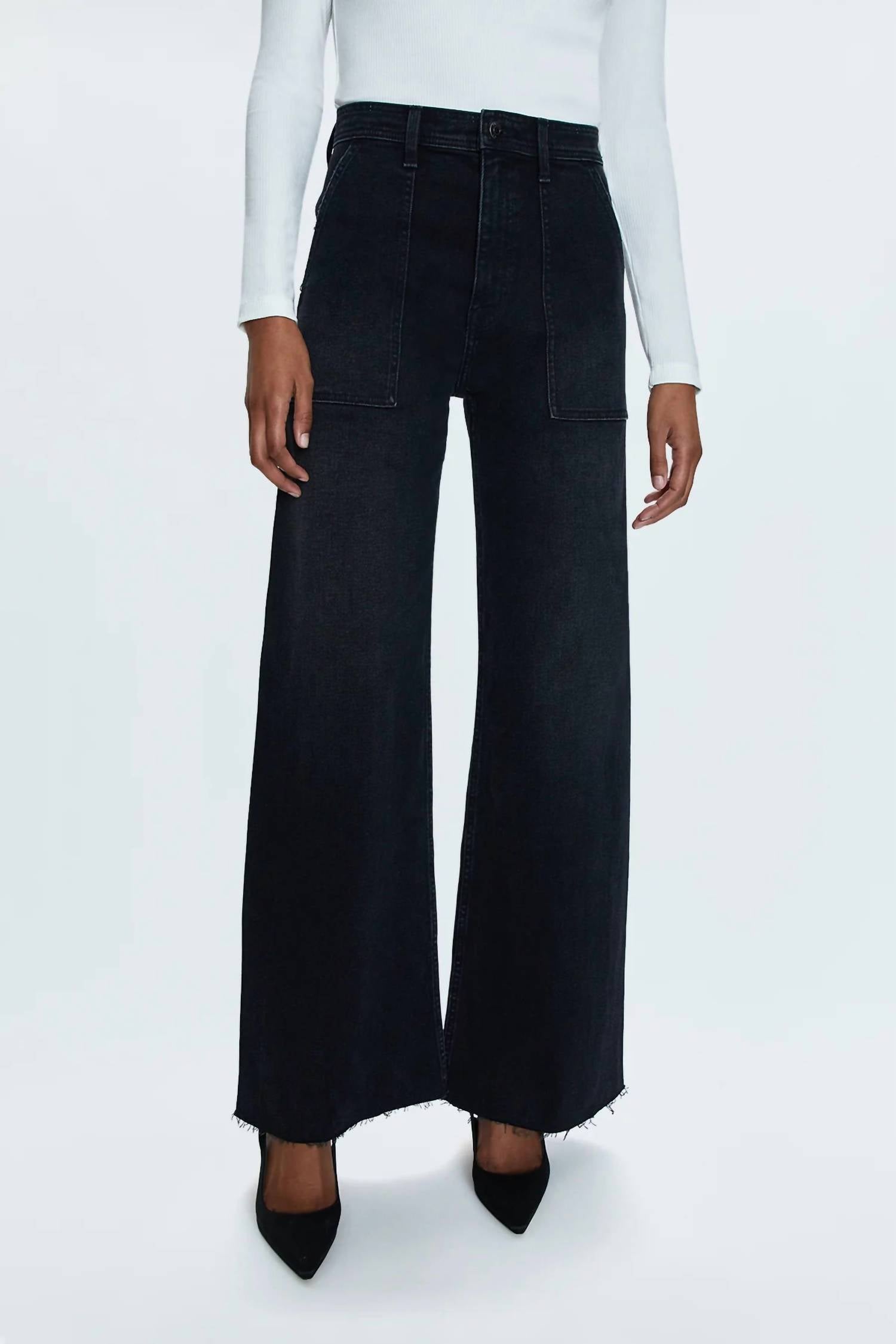 A calça jeans Penny High Rise Wide Jeans em Collins by Pistola é confeccionada em uma mistura de jeans stretch confortável, composta por 95% algodão, 4% elastano e 1% elastano, garantindo estilo e flexibilidade. Com cintura alta de 30 cm e pernas largas, esta calça jeans também inclui práticos bolsos frontais e bainha longa. A abertura da perna mede generosos 58 cm, com costura interna de 81 cm, proporcionando um caimento perfeito. Confeccionada em preto texturizado e lavado, esta calça jeans importada requer lavagem a frio, perfeita para adicionar um toque de praticidade ao seu guarda-roupa. A modelo tem 1,75 m e veste tamanho 26.
