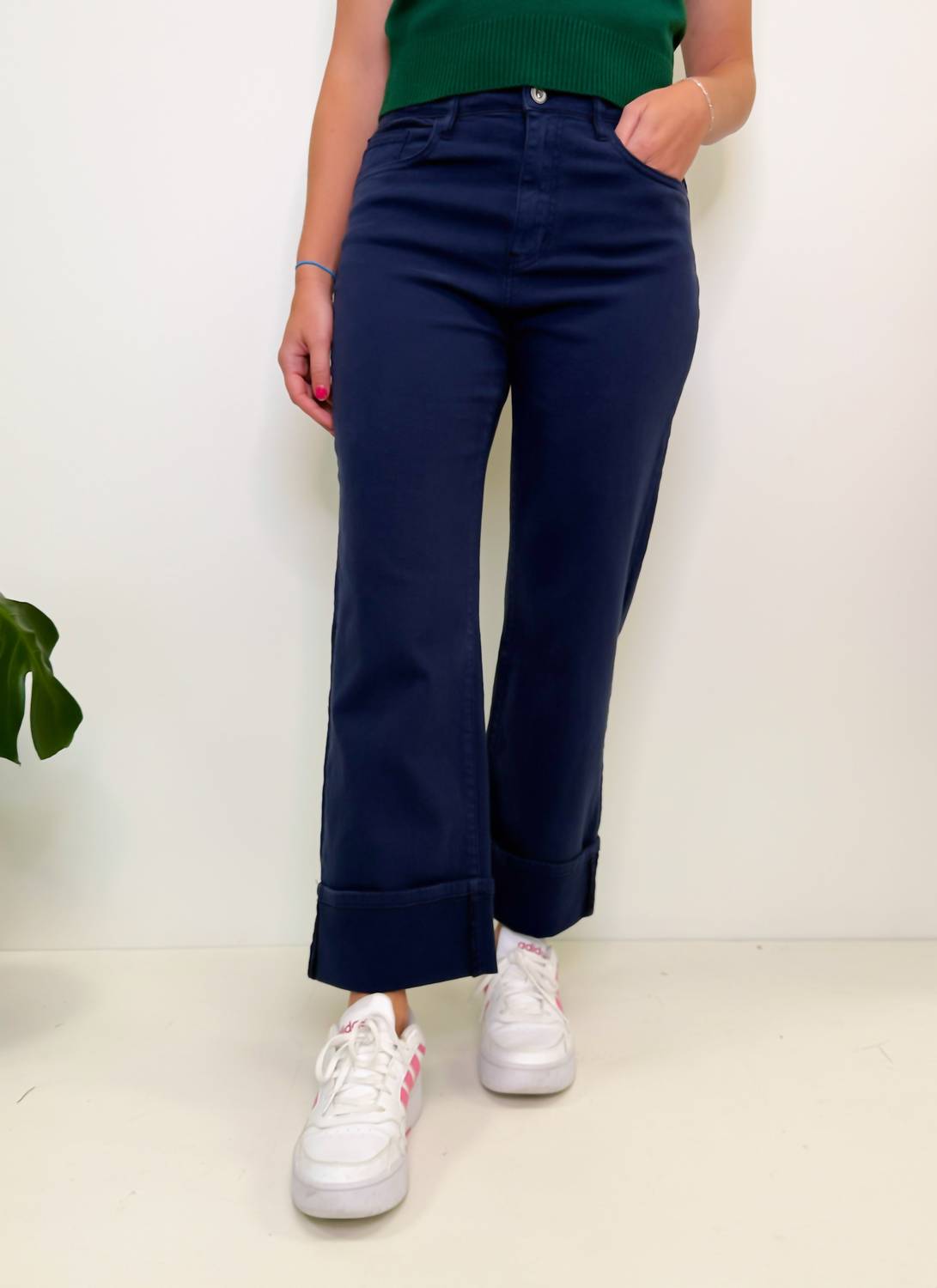 Pair these straight leg jeans with flats, sandals or even heels! You can't go wrong. Discover effortless style with the Madeline Straight Leg Cuffed Jeans by Q2, crafted for women in a dark navy shade perfect for both summers and winters. These cropped jeans are made from a comfortable cotton blend featuring lightweight denim and a touch of stretch for a flattering fit. With a mid-rise and straight leg silhouette, they boast a button closure and practical pockets. Composed of 98% cotton and 2% spandex, these jeans are easy to maintain with machine wash care. Measuring a garment length of 37 inches and a rise of 10.75 inches, they offer classic versatility and a nod to 90s fashion trends.