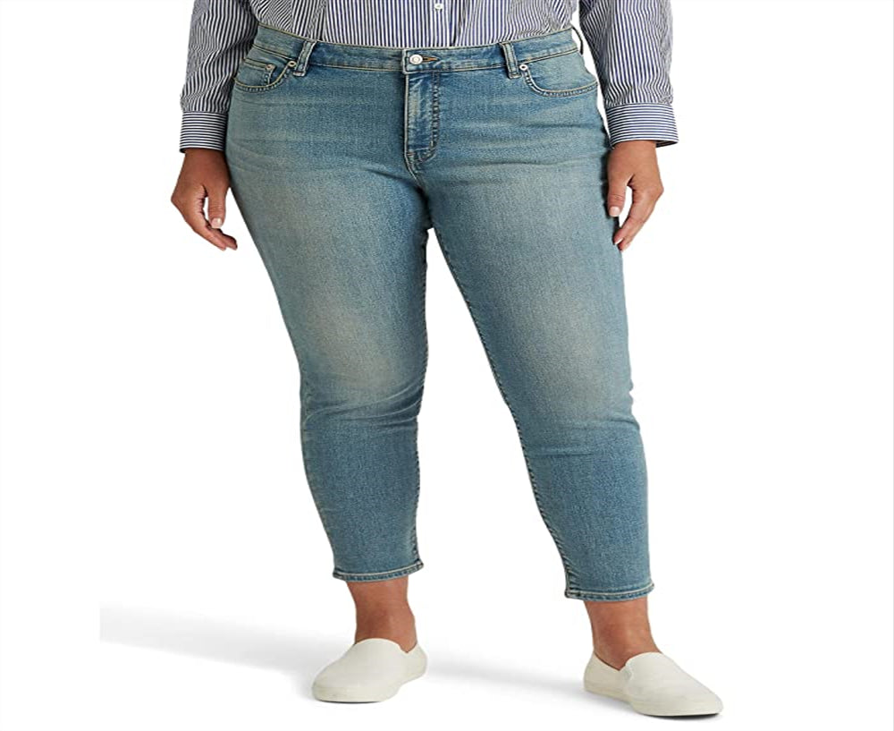 Fique deslumbrante com um visual moderno com a calça jeans skinny Ralph Lauren Plus Size de cintura alta, na cor Salt Creek Wash | Cós com passador de cinto, botões frontais e fecho de zíper | Construção clássica com cinco bolsos | Cintura alta | Estilo pull-on | 84% algodão | 14% poliéster