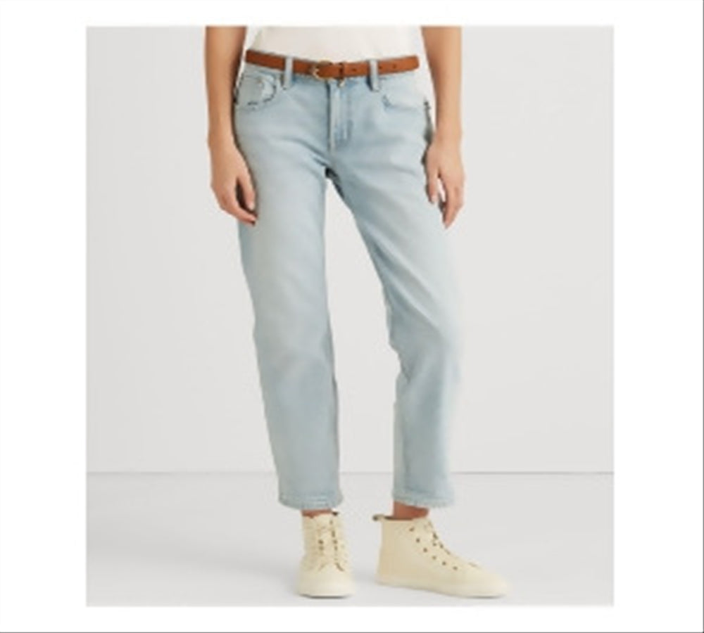Calça jeans feminina Ralph Lauren, elástica, com zíper, bolsos, afunilada, cintura alta, azul, tamanho 8