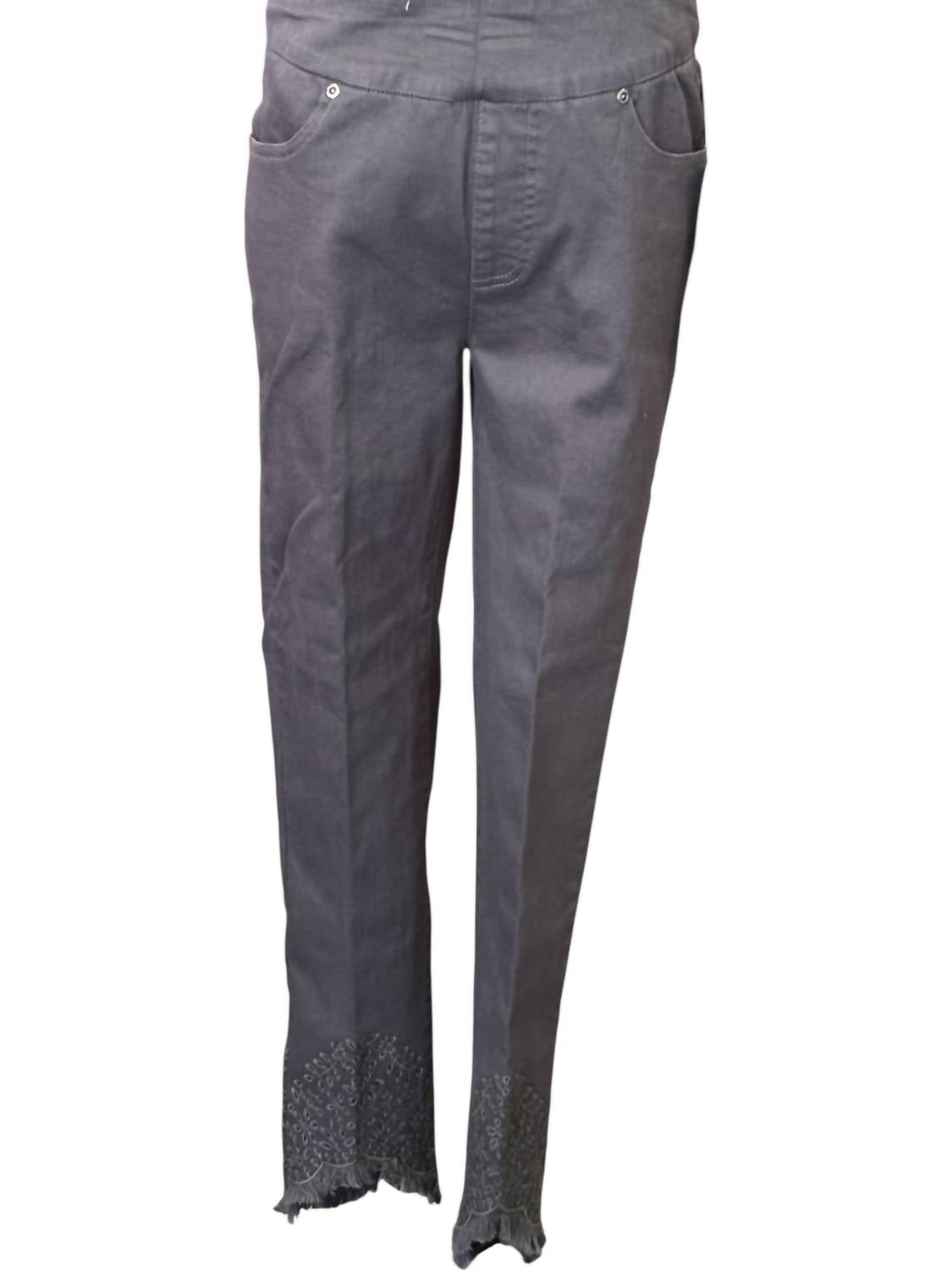 Confortável e estiloso, amamos esse jeans cropped por todos os motivos óbvios. Apresentamos a Calça Jeans com Bainha Recortada Bordada da Slimsation By Multiples em um tom cinza chique, perfeita para adicionar um toque de estilo ao seu guarda-roupa. Esta calça jeans flare de cintura alta apresenta uma bainha recortada exclusiva e é confeccionada em algodão de alta qualidade. Com bolsos frontais e traseiros de verdade, esta calça jeans estampada oferece estilo e funcionalidade. O fechamento é por cadarço e a manutenção é fácil, seguindo as instruções de lavagem à máquina.