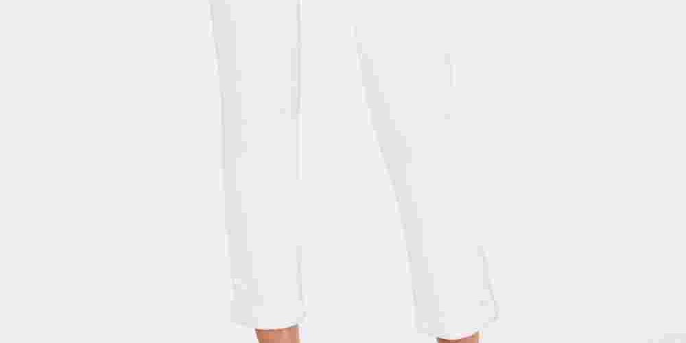 Bolsos adelgaçantes | Costura interna aprox.: 61 cm com punho; aprox. 66 cm sem punho | Cós baixo | Estilo pull-on | Bolsos frontais falsos; bolso traseiro funcional