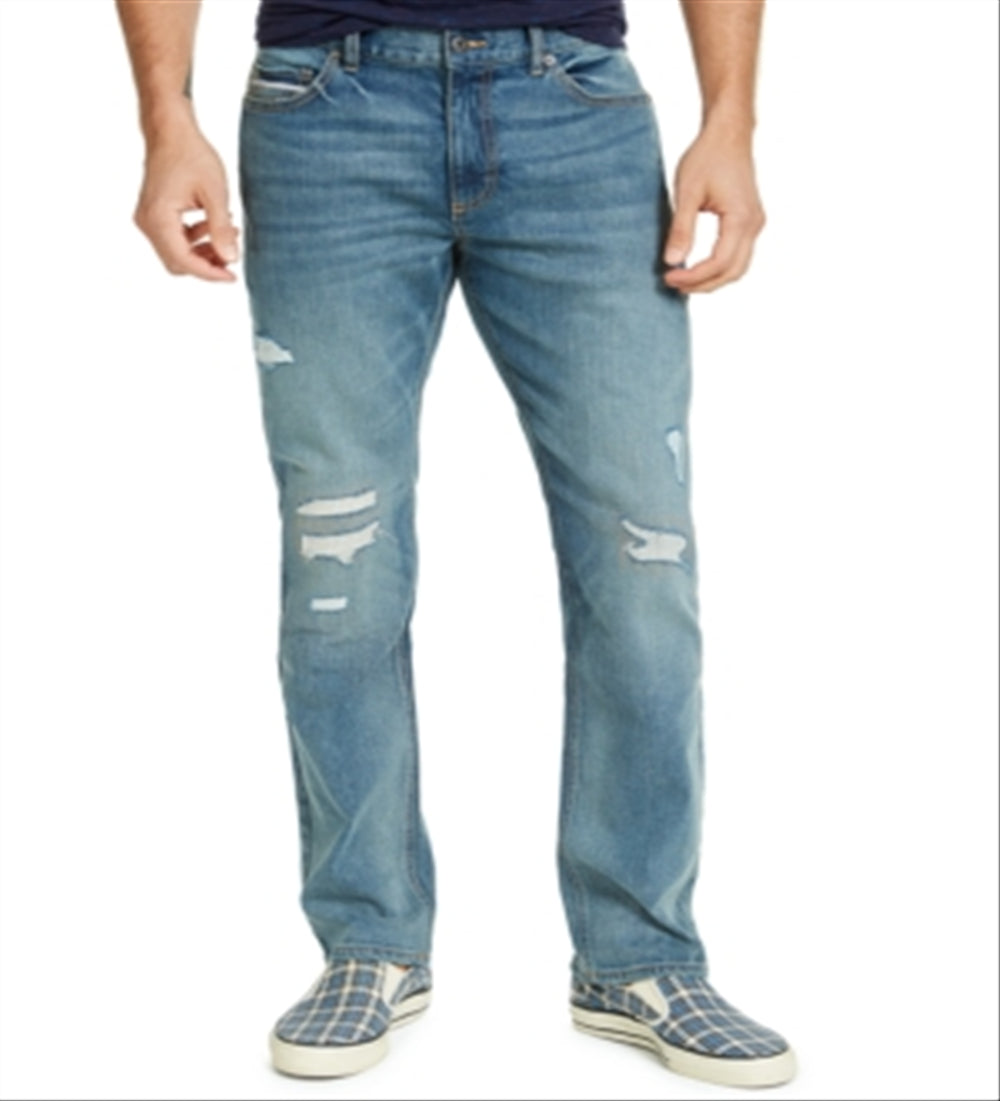 Calça jeans Knickerbocker masculina Sun + Stone, corte reto, azul, tamanho 34x32