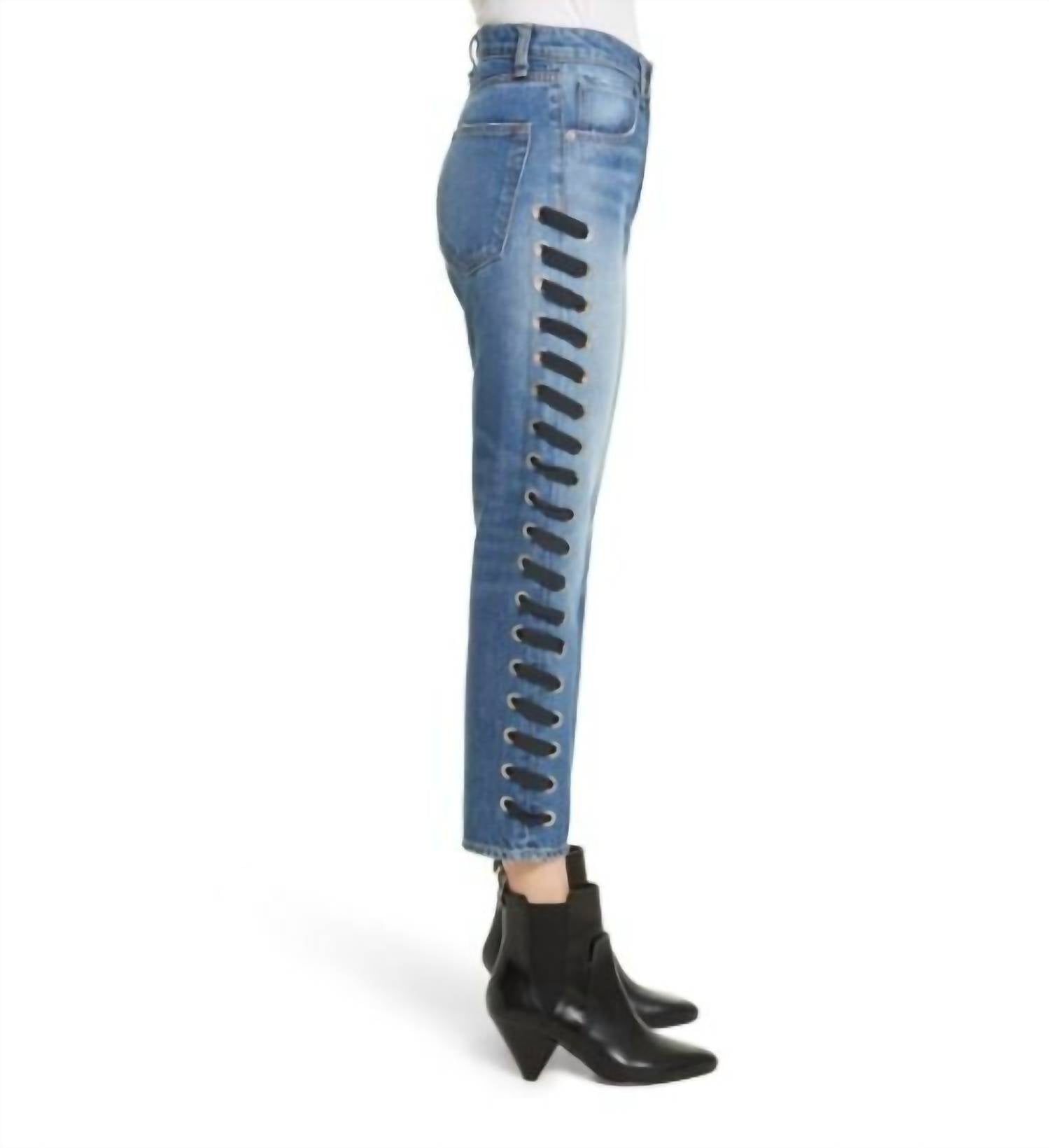 A cintura alta veio para ficar e nós amamos especialmente esse estilo. Apresentando a Calça Jeans Ines Lace Up Side Denim da Veronica Beard em um sofisticado acabamento azul. Combinando perfeitamente o moderno com o charme feminino, esta calça jeans cropped elegante apresenta fitas de gorgorão que se enrolam em ilhós prateados brilhantes. Composição: 100% algodão, proporcionando um ajuste confortável e fiel ao tamanho. Perna interna: 25", Cós frontal: 11", Cós traseiro: 14,5", Abertura da perna no quadril: 11,5", Cintura: 14,5". Tipo de fechamento: Braguilha com zíper e botão. Origem: Fabricado nos EUA. Instruções de cuidado: Somente lavagem a seco.