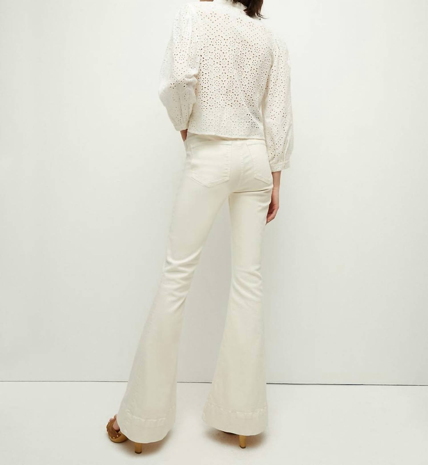Uma silhueta elegante e surpreendentemente versátil. Bolsos aplicados e cós alto na silhueta boca de sino. Caimento elegante e recuperação rápida. Cós 28 cm | Costura interna 89 cm | Abertura da perna 66 cm. A modelo tem 1,78 m e veste tamanho 56. Lavar à máquina em água fria.