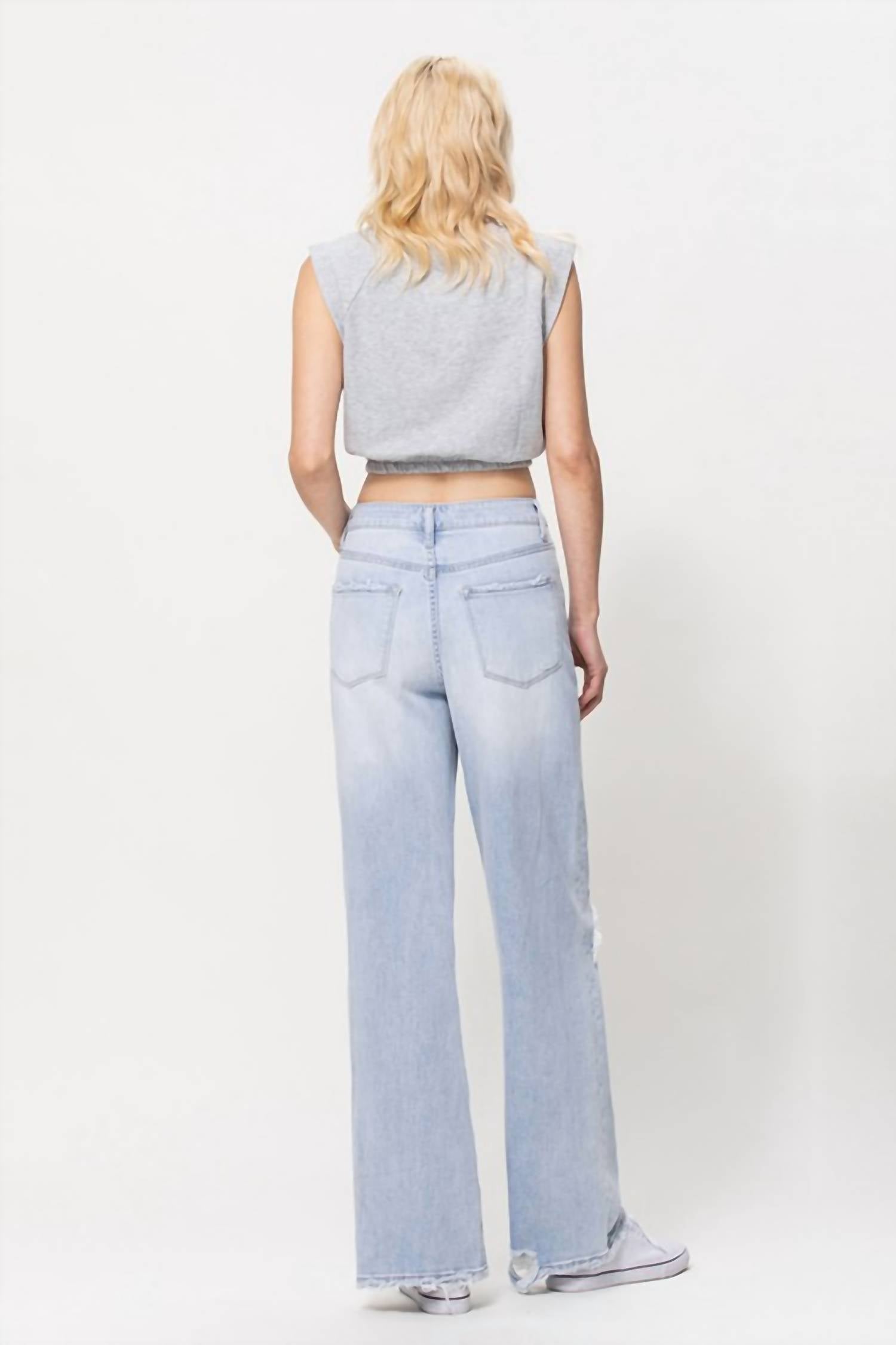 Tão fofos quanto confortáveis. Apresentamos a Calça Jeans Solta Desgastada Vintage dos Anos 90 da VERVET BY FLYING MONKEY, uma peça essencial com inspiração retrô para sua coleção de jeans. Esta calça jeans azul apresenta um corte largo com acabamento desgastado e um prático fecho de botão. Projetada pensando na praticidade, ela vem equipada com bolsos para o uso diário. As instruções de cuidado recomendam uma lavagem delicada à mão, seguida de secagem no varal.