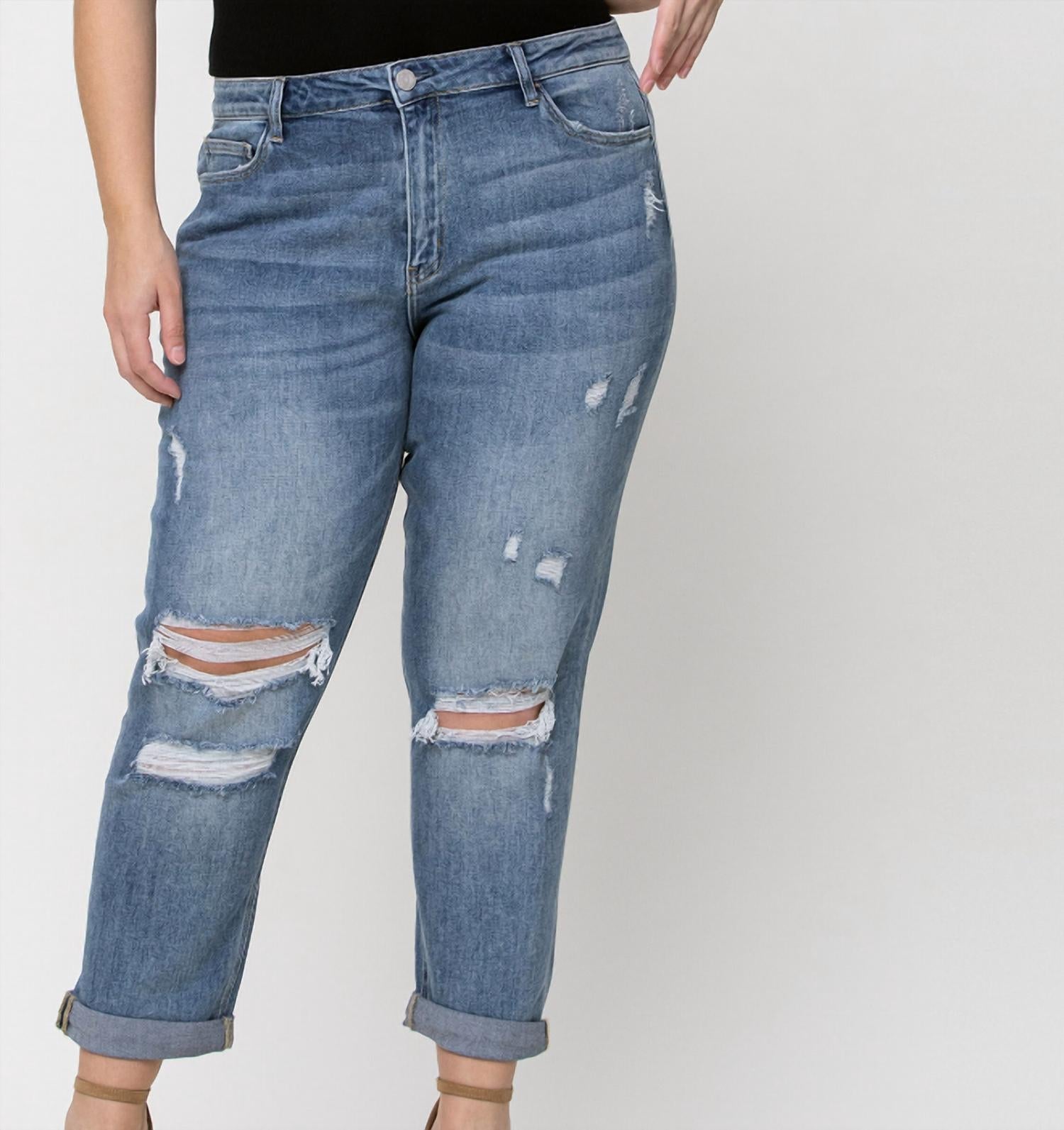 Esta calça jeans boyfriend deixa qualquer peça com um visual descolado e descolado. A calça jeans boyfriend desgastada apresenta um design elegante e desgastado. O cós alto garante uma silhueta elegante, enquanto a versátil perna afunilada permite dobrar ou desdobrá-la. Com elasticidade perfeita, fecho de botão e bolsos funcionais, esta calça combina moda e praticidade para um uso diário sem esforço.
