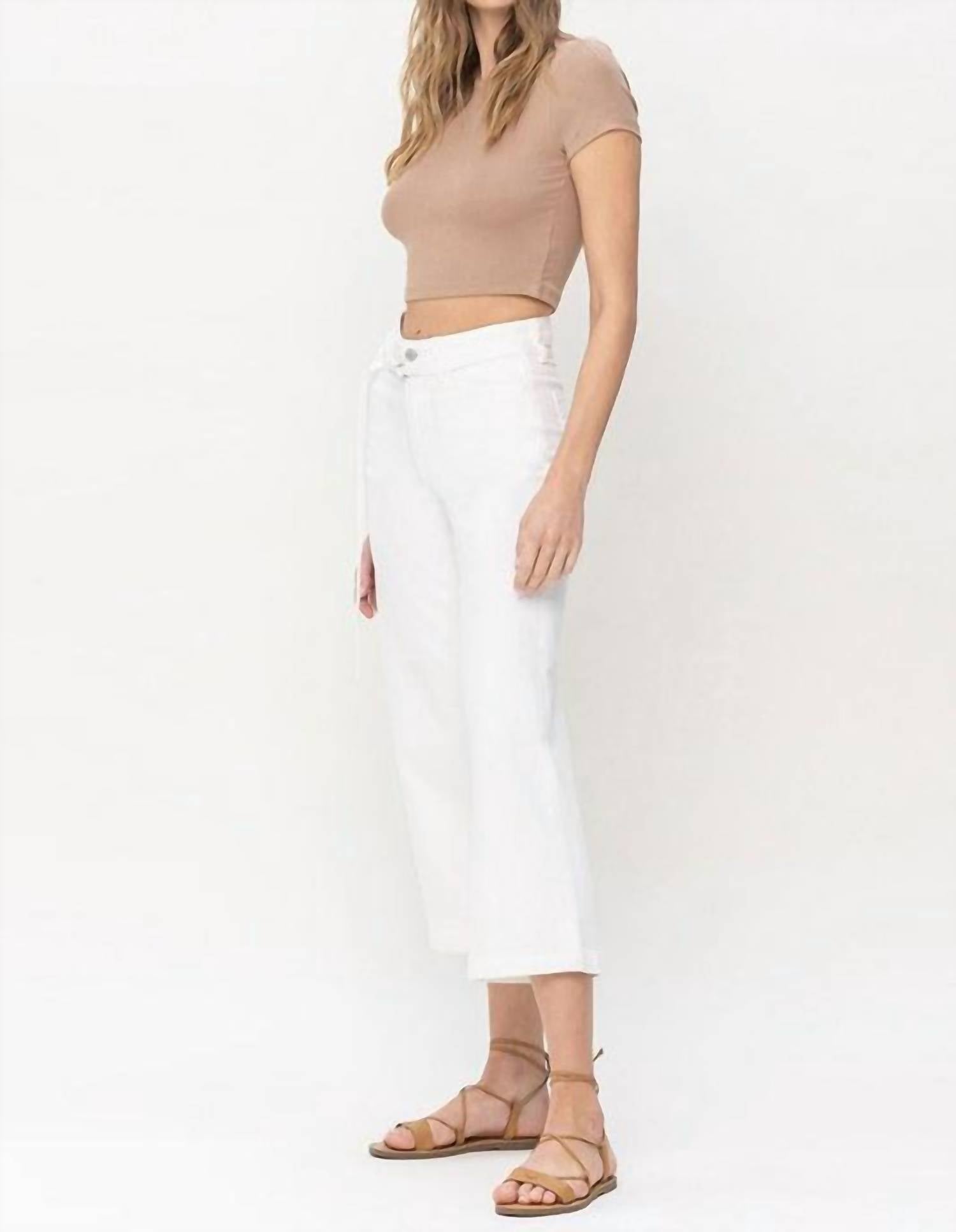 Combine esta calça jeans de perna larga com mules, chinelos ou suas sandálias de tiras favoritas. Calça jeans de cintura alta e perna larga com cinto, feita em jeans com elastano confortável. A modelo tem 1,75 m e veste tamanho 26.
