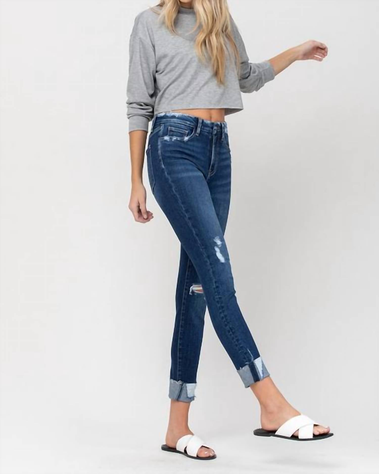 Eleve sua coleção de jeans com a Calça Jeans Skinny High Rise Distressed Clean Cut da VERVET BY FLYING MONKEY. Confeccionada para mulheres com uma confortável mistura de algodão (90,5% algodão, 7,5% poliéster e 2% elastano), esta calça jeans apresenta um design de cintura alta e pernas skinny que promete flexibilidade e um caimento elegante. Os detalhes ousados em estilo desgastado e o comprimento cropped, complementados por uma bainha com punho único, conferem um toque contemporâneo, ideal para exibir seus sapatos favoritos. Fechamento: Fecho de zíper. Cuidados: Lavar à máquina e secar em tambor. Cintura: 25 cm, Entrepernas: 68 cm, Abertura da Perna: 25 cm. A modelo mede 1,78 m e veste tamanho 66.