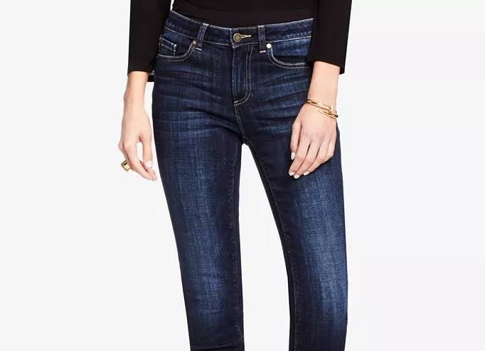 Cintura médiaCaimento justo nos quadris e coxasPerna justaFecho frontal com zíper e botão; passantes para cintoEstilo clássico de 5 bolsosDisponível em várias lavagens