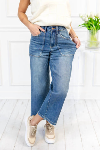 Judy Blue - Calça jeans curta com bolso utilitário e perna larga