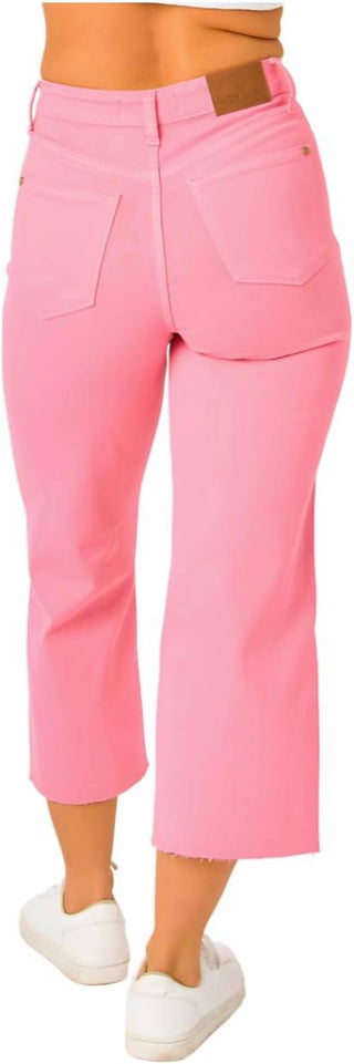 Judy Blue - Calça jeans curta com controle de barriga de cintura alta e perna larga