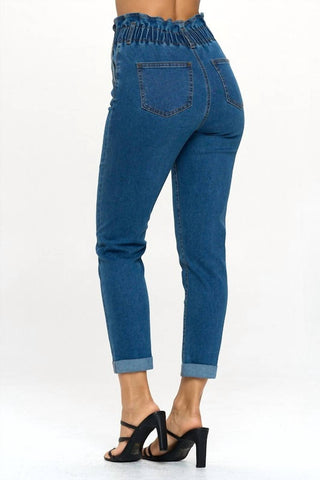 Chocolate Usa - Calça jeans com botões e cintura franzida com bolsos de papel