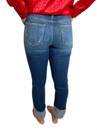 Judy Blue - Calça jeans rasgada com cintura média e punho de 10 cm