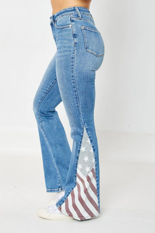 Judy Blue - Calça jeans flare com bandeira americana