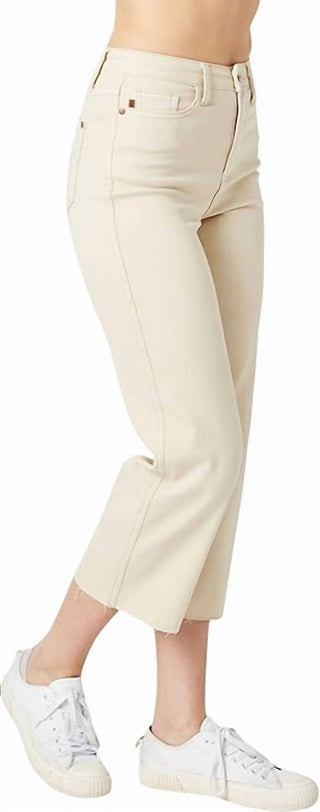 Judy Blue - Calça jeans cropped de cintura alta e perna larga