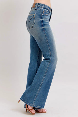 Judy Blue - Calça jeans flare com bolso e lavagem vintage