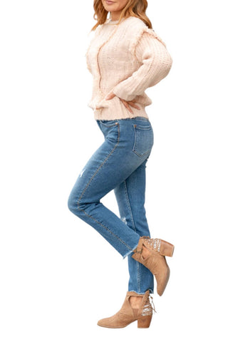 Judy Blue - Calça jeans boyfriend desgastada de cintura média