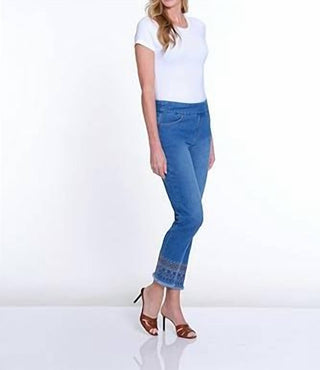 Slimsation By Multiples - Calça jeans lisa com barra bordada e barra reta