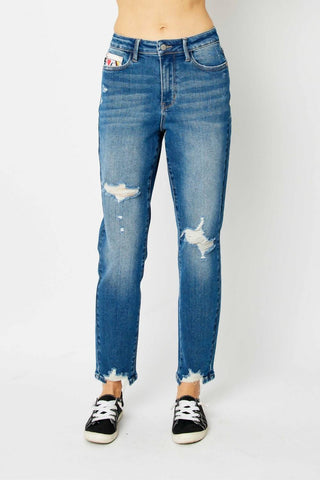 Judy Blue - Calça jeans boyfriend de cintura alta com bolso para moedas