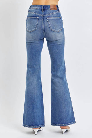 Calça jeans flare com lavagem contrastante e controle de barriga Judy Blue
