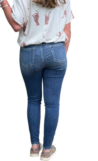 Judy Blue - Jeans Skinny Destroy com Controle de Barriga de Cintura Média
