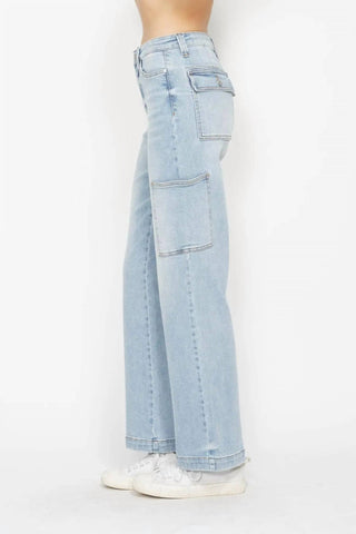 Judy Blue - Calça Jeans Cargo de Cintura Alta e Perna Larga