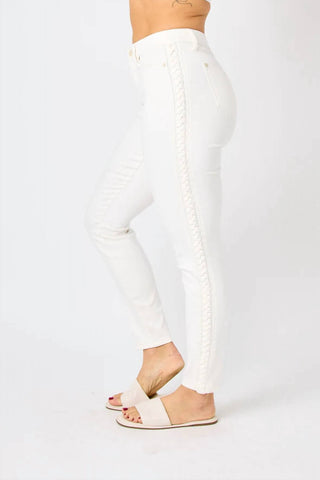 Judy Blue - Calça jeans relaxada com cintura média e costura lateral trançada