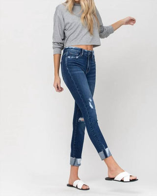 Vervet By Flying Monkey - Calça Jeans Skinny Crop Desgastada de Cintura Alta e Corte Limpo