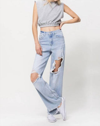 Vervet By Flying Monkey - Calça jeans larga, larga e com cintura alta e punho duplo