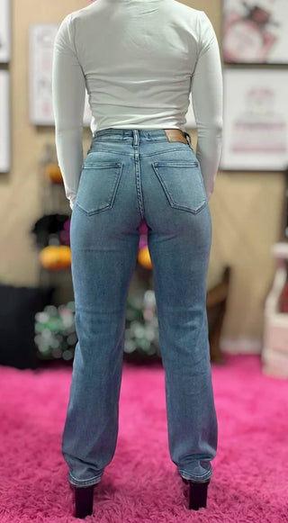 Judy Blue - Calça jeans reta listrada com controle de barriga e cintura alta