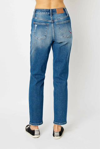 Judy Blue - Jeans Boyfriend com Bolso para Moedas da Rainha de Copas