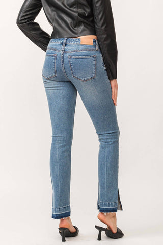 Calça jeans reta e justa com fenda e cintura média Dear John Denim Playback
