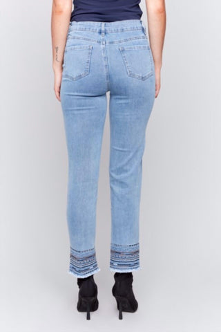Tru Luxe - Calça Jeans Desfiada com Bordado Floral