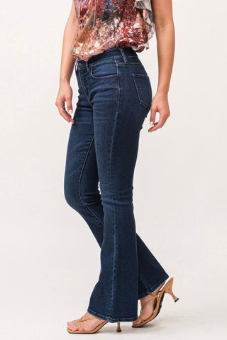 Judy Blue - Calça jeans cropped bootcut com cintura média e barra solta