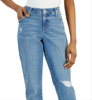 Jeans Curvy Destructed Girlfriend feminino Style & Co, azul, tamanho 6