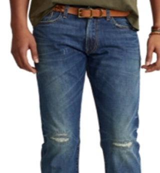 Calça jeans masculina Polo Ralph Lauren Slim Straight, azul, tamanho 33x32