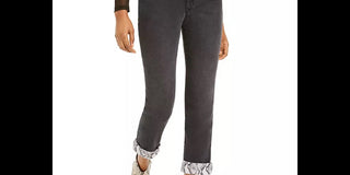 Calça jeans feminina estilo boyfriend com punho de cobra da INC International Concepts, preta, tamanho 0